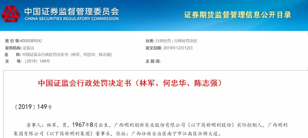 这起案件的主角叫林军,男,1967年8月出生,是广西明利股份的实际控制人。