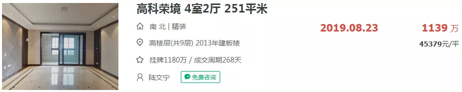 高科荣境也是如此,链家网显示项目二手房挂牌均价已达到39926元/㎡,近90天内便已有2套成交,成交单价根据房屋面积大小、楼层高地、装修标准等情况而定,有较大差距,最高达到45379元/㎡。