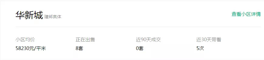 华新城上一次开盘时间还是在2017年11月21日,8成首付,销许均价为44019-44616元/㎡,共有1431组人买150套,中签率仅10.5%。二手房方面,据链家网显示,该项目挂牌均价58230元/㎡。
