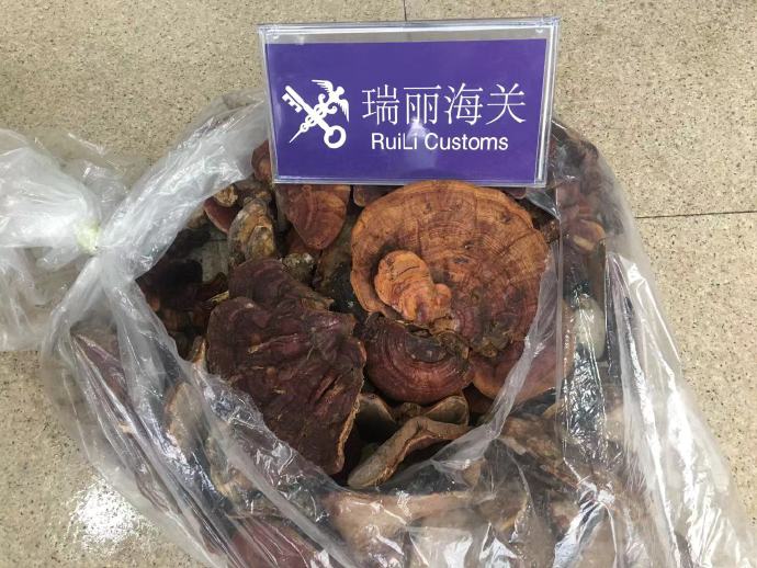 据海关总署办公厅微博消息,日前,昆明海关所属瑞丽海关在姐告边境贸易区内的中缅街入境通道,从一名缅甸籍男性边民的行李中查获违规携带入境的灵芝5千克。