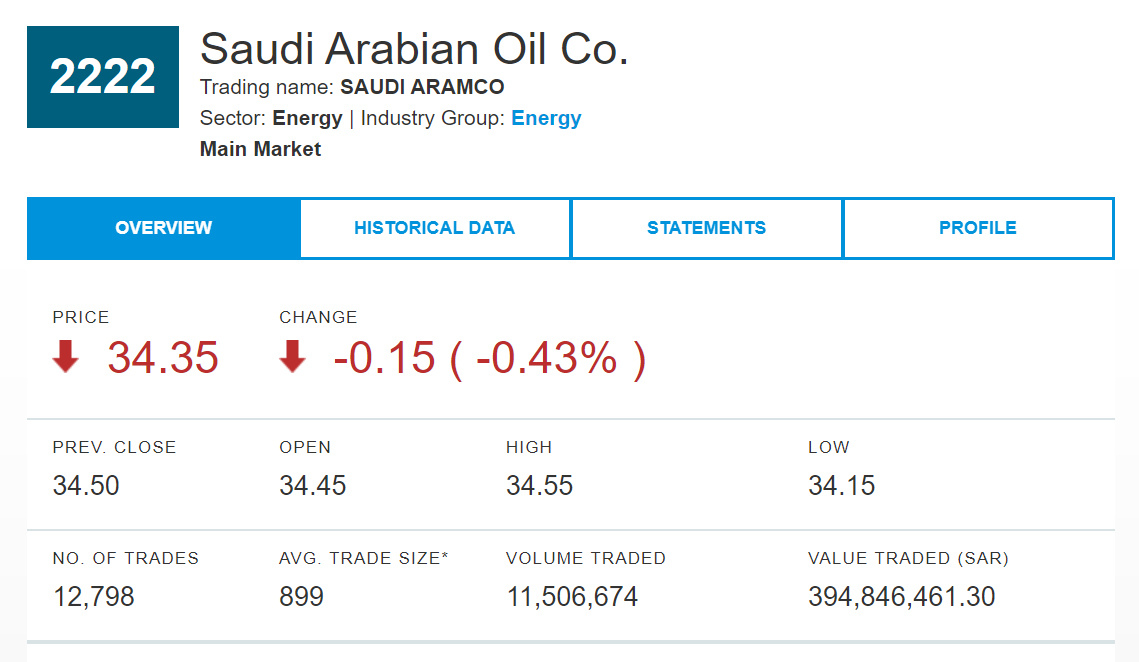 截至1月7号收盘,沙特阿美的股价已连续三天下跌,报收34.35沙特里亚尔/股(约合9.16美元/股)。
