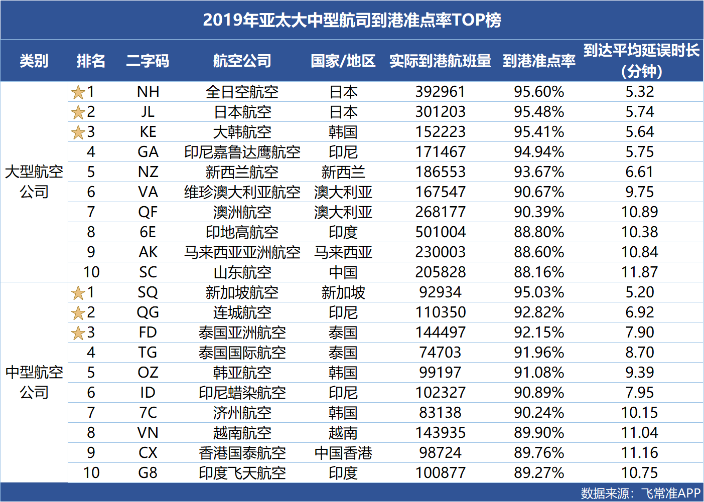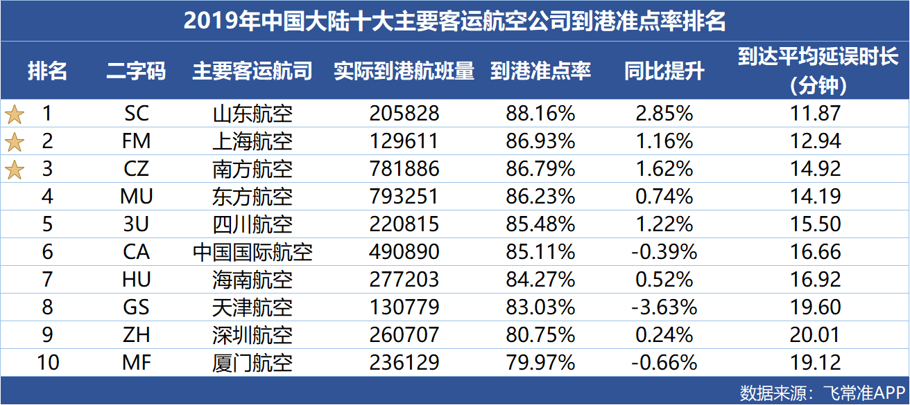 机场方面,在3000万级以上机场中,西安咸阳机场凭借81.31%的出港准点率成为全年出港最准点的机场;航空公司中,山东航空到港准点率为88.16%,不仅是中国主要客运航司中到港准点率最高的,也是唯一一家跻身亚太大中型航空公司到港准点率TOP10的航司。