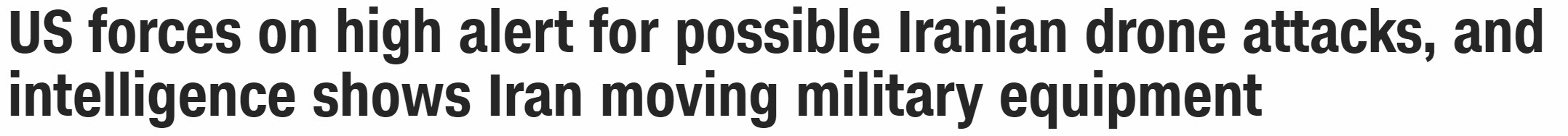 【美军在中东进入高度戒备以防伊朗无人机攻击】美国两位官员向CNN透露,美国在中东的军队和防空导弹炮塔周一夜间进入高度戒备状态以防伊朗可能发动无人机攻击,因为越来越多的情报显示攻击美国目标的威胁迫在眉睫。