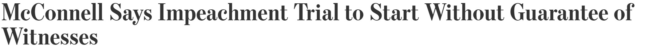 【麦康奈尔称已有足够票数制定弹劾审判规则】美国参议院多数党领袖、肯塔基州共和党参议员麦康奈尔称,他已有足够票数来制定弹劾审判规则,不保证会传唤新的证人,从而回绝了民主党人的要求。