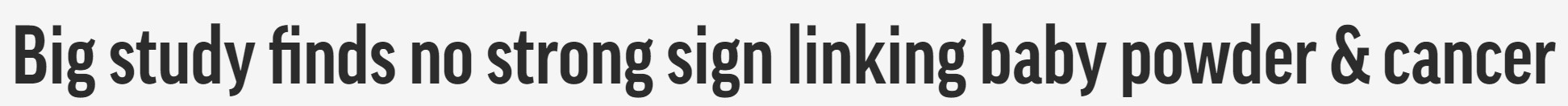 【大型研究发现爽身粉及癌症之间没有强力关联】美国政府主导的一项研究发现,没有强力证据表明婴儿爽身粉与卵巢癌有关联,这是该问题上最大规模的一次研究分析。