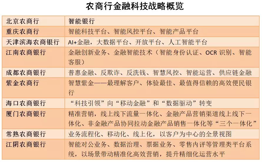 2、除了做实用的金融科技,农商行建设金融科技要有明确的战略,要形成对于主航道业务突击的有力支持。重庆农商行在知名咨询公司的协助下,制定了金融科技创新5年规划,让金融科技战略有了延续性。重庆农商行专门引入大数据、人工智能背景人才100余人。2019年成立了总行层面的金融科技中心,以事业部机制运转,总共300人的编制,包含金融科技管理委员会和行长直管的总行金融创新部等部门。常熟农商银行成立了金融科技总部,科技人员712人,在全行占比12%,在16家上市银行中排名第二。江南农商银行将2016年成立的产品创新实验室升级为新农村金融科技实验室,全面开启金融智能技术建设和金融创新业务联合拓展。张家港农商行基于政务数据合作,持续开发优企贷、优抵贷、优农贷产品,金融科技战略高度聚焦小微金融。