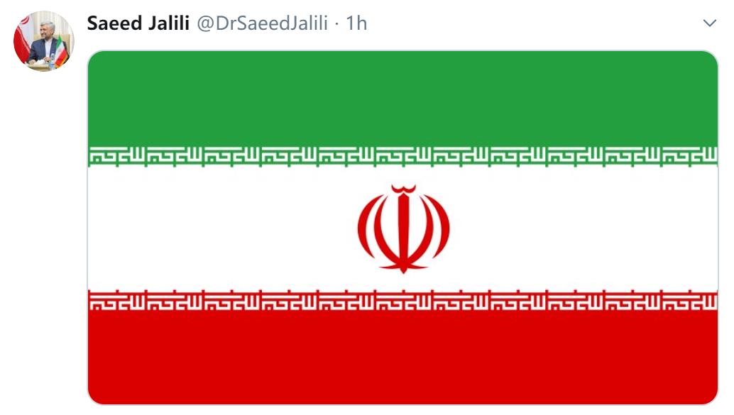 苏莱曼尼死后不久,美国总统特朗普在Twitter上发布了一面美国国旗的图案。而当伊朗在8日发射导弹后,伊朗首席核谈判代表Saeed Jalili也在Twitter上模仿这一举动,发布了一面伊朗国旗。