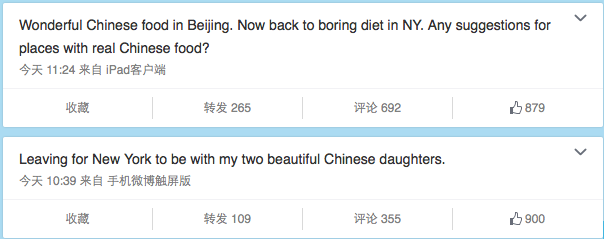 9月20日上午9点11分,默多克用中文发布了第一条新浪微博: