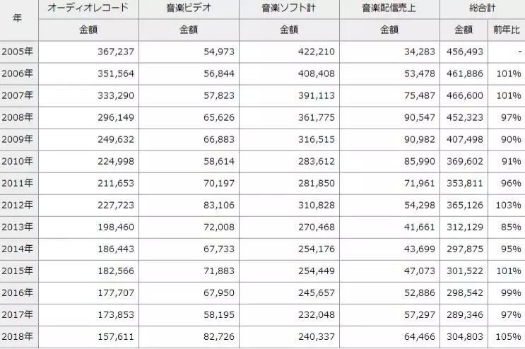 中韩关系降至冰点的同时,日娱自己也出现了危机。根据日本唱片协会官网的数据显示,从2005年至今,日本唱片销量持续下跌。唱片销量下跌的同时,日本音乐的影响力也在下降。
