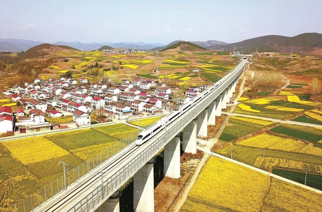 春分已过,春意盎然,不少旅客选择乘坐火车出游,在享受铁路优质服务的同时,欣赏沿线诗情画意的田园风光,感受不一样的大美中国。铁路部门加开多趟列车,为旅客出游踏青提供更多便利。图为一列动车组列车行驶在西成高铁陕西省汉中市洋县段。线路两旁油菜花竞相开放,高铁列车穿行其中,犹如一幅美丽的风景画。唐振江 摄