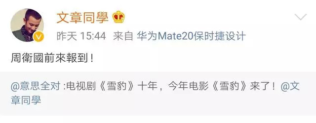 2020年1月4日,《雪豹》制片人、编剧张健宣布将拍《雪豹》电影版,而文章将回归出演周卫国。这或许也是文章正式复出的一个信号。