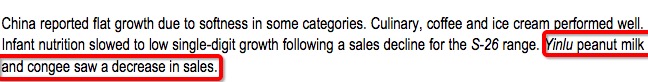 界面新闻注意到,雀巢三季度财报显示银鹭花生牛奶和粥的销售处于下滑状态。雀巢首席执行官马克·施奈德(Mark Schneider)曾表示,正在非常努力地解决银鹭业务所处状况,“中国市场对许多食品和饮料公司来说都是低迷之年”。