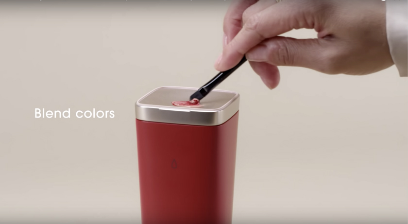 产品使用上,以定制粉底液为例,使用者可以通过手机APP预览不同色号的上妆效果,选到想要的一个,Perso的三个彩色墨盒就会分别喷出适量的膏体,混合在一起后创造出想要颜色。定制口红也是相似的工作原理。