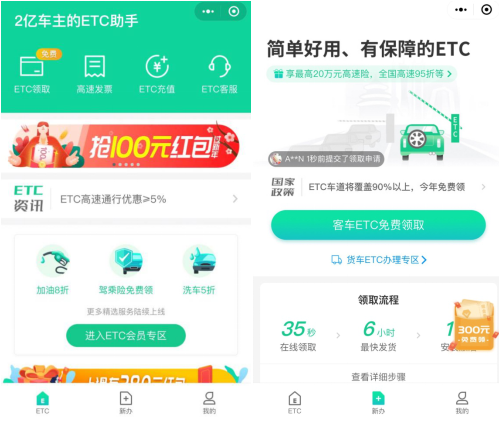 凭借“35秒极速在线申办”、“微信支付免开卡”等多项极致的服务体验,成为广大车主ETC出行首选产品。数据显示,截止2019年底,ETC助手已覆盖全国超3500万车主,ETC助手微信小程序日均访问量达数百万人次,日申办量最高超10万,是全国ETC线上发行的重要渠道。此外,ETC助手日均通行费交易笔数超100万笔,通行费发票申领总用户超1000万,是重要的ETC发票线上申领平台。
