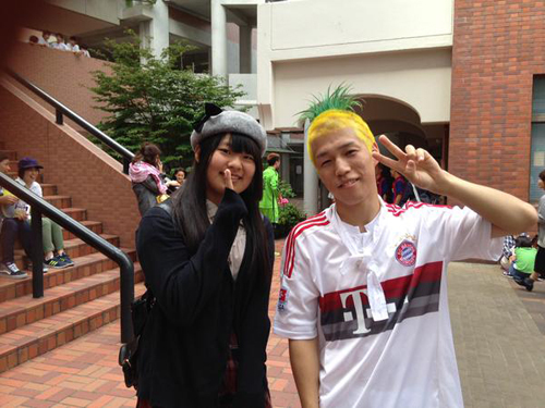 想在高中阶段成为名人该怎么办呢?当然是把自己弄得又怪又显眼啊!日本广岛县的修道高中9月19日举办体育节,一群3年级学生想趁机在高中生活画下最亮眼的句点,决定所有人都弄个奇形怪状的发型参加体育节,其中最引人注目的就是凤梨头了!这位凤梨头不但立刻成为网路名人,还在体育节被女学生们包围抢着合照,早知道我当年也该弄个怪发型啊……