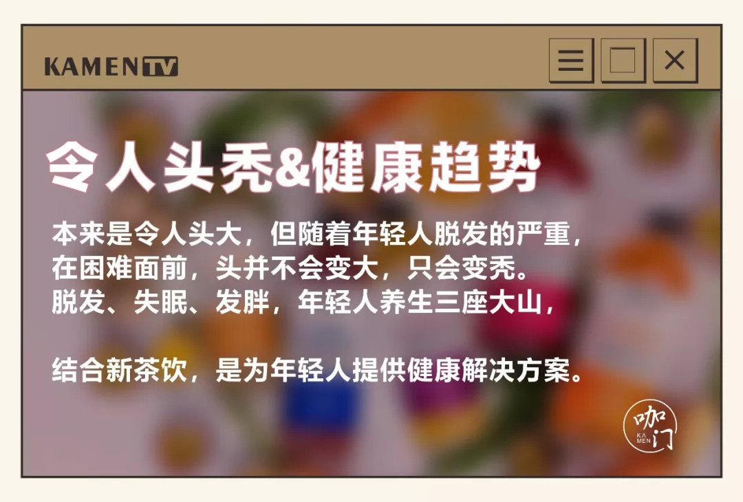 少年养生的大潮流把健康二字抬得越来越高。各种以健康之名的浪潮性产品接踵问世,比如阿胶咖啡、人参奶茶以及益生菌、胶原蛋白等也加入了茶饮中。