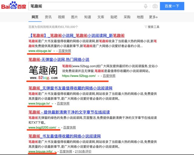 而且,随着多年的经营,盗版网站也形成了品牌效应。以“笔趣阁”网站为例,其是早年较为出名的网络文学盗版网站,在被依法处理关停后。诸多新开设的盗版网站冒“笔趣阁”之名,吸引用户的关注。