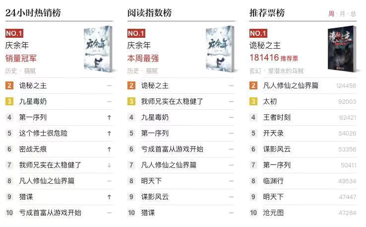 影视剧大火的同时,相应的,原著作品也再一次受到用户的热捧。在等待影视剧更新的过程中,通过看小说的方式提前了解剧情,也成为众多观众的选择。这样一部12年前的老作品,重回起点中文网榜首的位置。