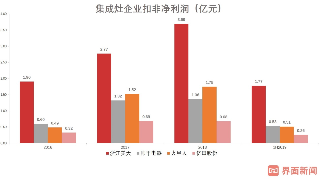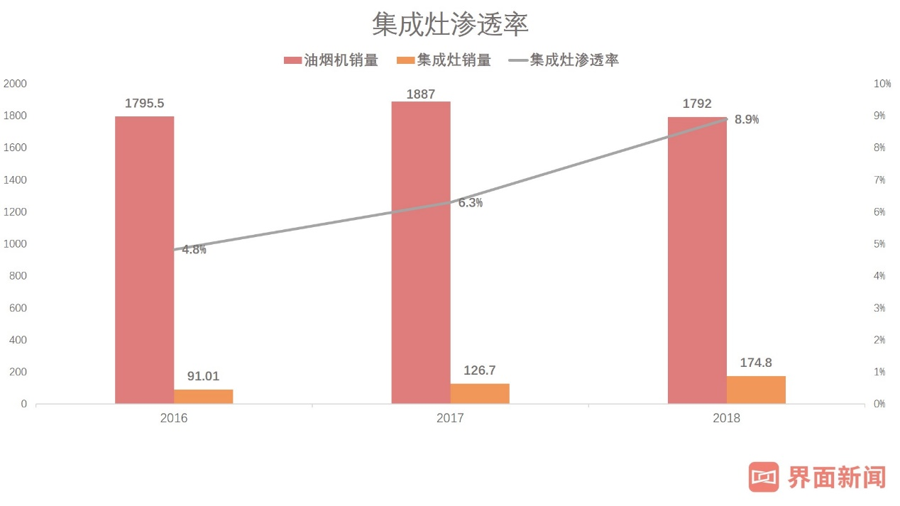 而根据传统烟灶企业老板电器(002508.SZ)和华帝股份(002035.SZ)的披露,2019年上半年,这两家的集成灶营收分别仅为8070万元和218万元。