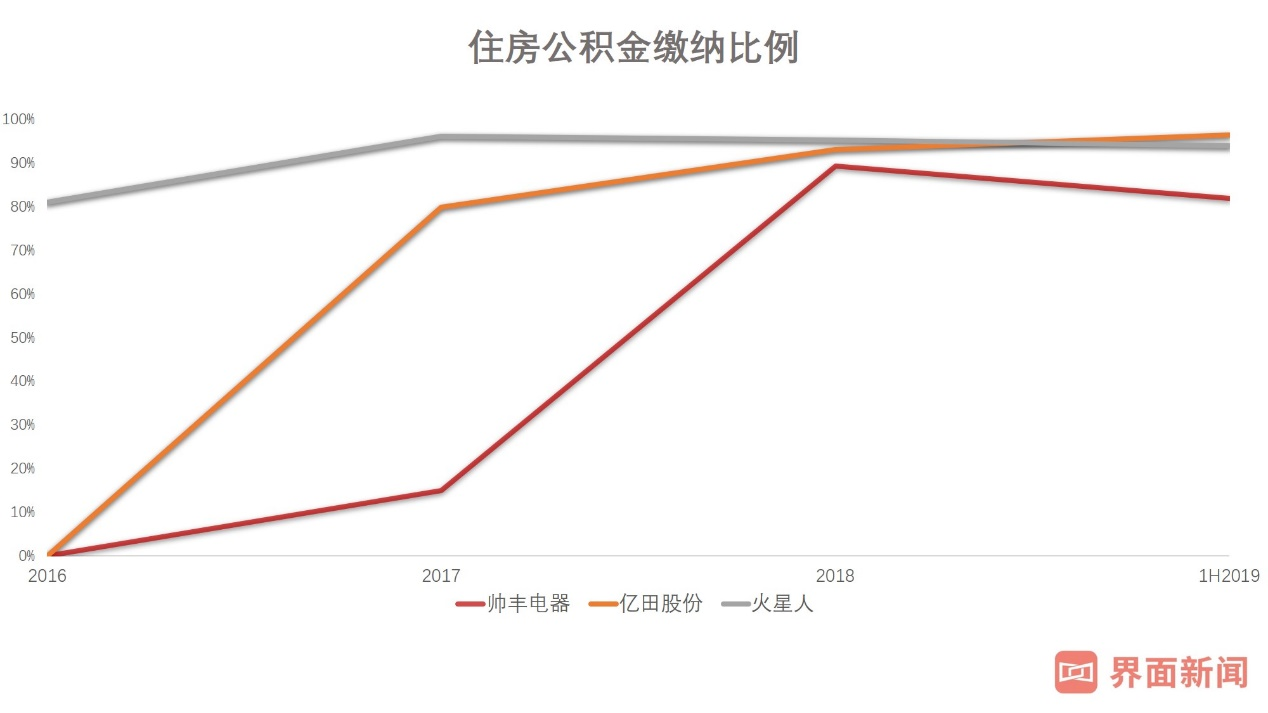 从员工薪酬福利方面,集成灶行业在前几年可以说是粗放发展,帅丰和亿田两家公司在2016年竟然全公司没有一人缴纳住房公积金。如果不是上市的要求所迫,这两家企业现在会不会为员工缴纳住房公积金可能还要打个问号。