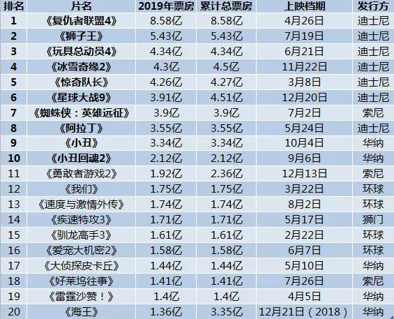 2019年,北美电影市场交出了一份漂亮的成绩单。