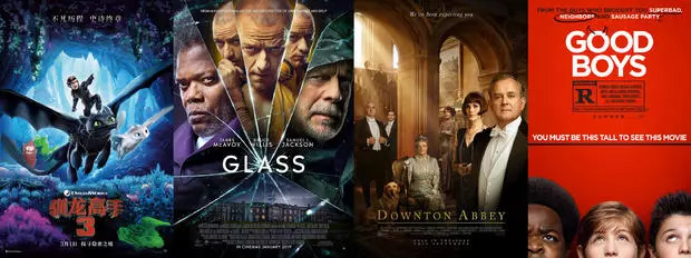 环球旗下的动画电影系列也是吸引家庭观众的法宝,梦工场动画出品的《驯龙高手3》以及照明动画的《爱宠大机密2》都获得了不俗的票房成绩。奈特·沙马兰的惊悚续集《玻璃先生》、英剧大电影《唐顿庄园》、R级儿童喜剧《好小子们》等中小型制作也带来了高回报。