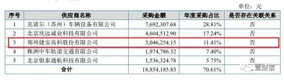 2016年,腾实信成为捷安高科的第一大供应商,采购金额是330.13万元,占当期采购总额的4.98%。