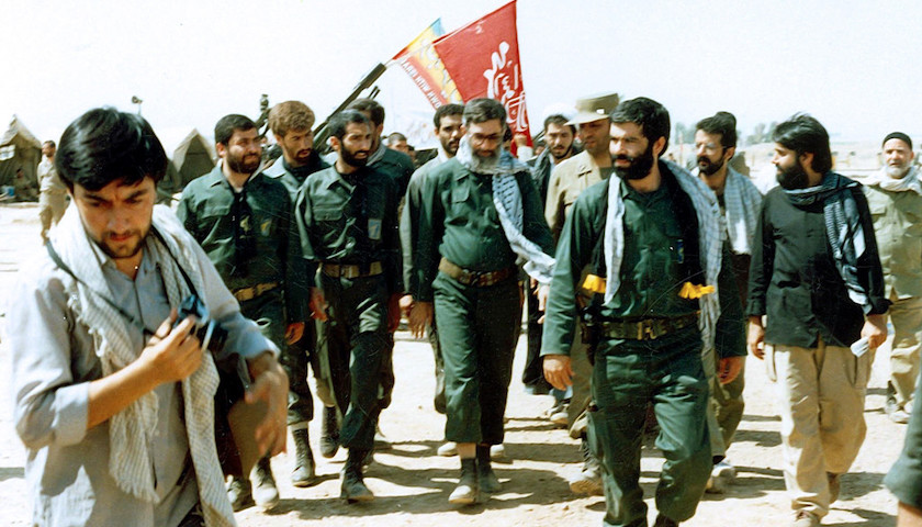 资料图:1988年8月两伊战争期间,时任伊朗总统哈梅内伊(中)视察前线战场。来源:维基百科