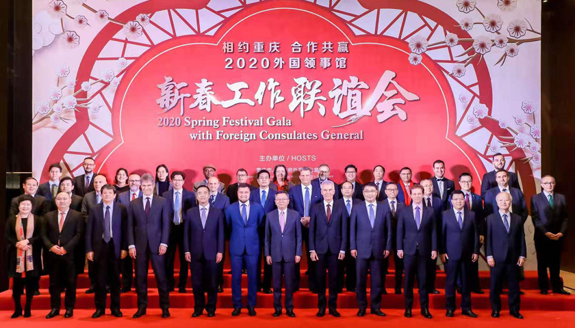 1月10日,2020年重庆市外国领事机构新春工作联谊会在渝中区举办,各国驻渝领事机构人员、渝中区外资企业负责人等欢聚一堂,共话发展。市政府副市长李波,市政府外办主任章勇武,渝中区委书记黄玉林,渝中区区长左永祥,渝中区人大常委会主任米绍林,渝中区政协主席陈大奎等出席了会议。会上,左永祥介绍,截至当前,渝中区已集聚了世界500强企业及其分支机构136家、国际知名品牌245个,实际利用外资4.7亿美元。