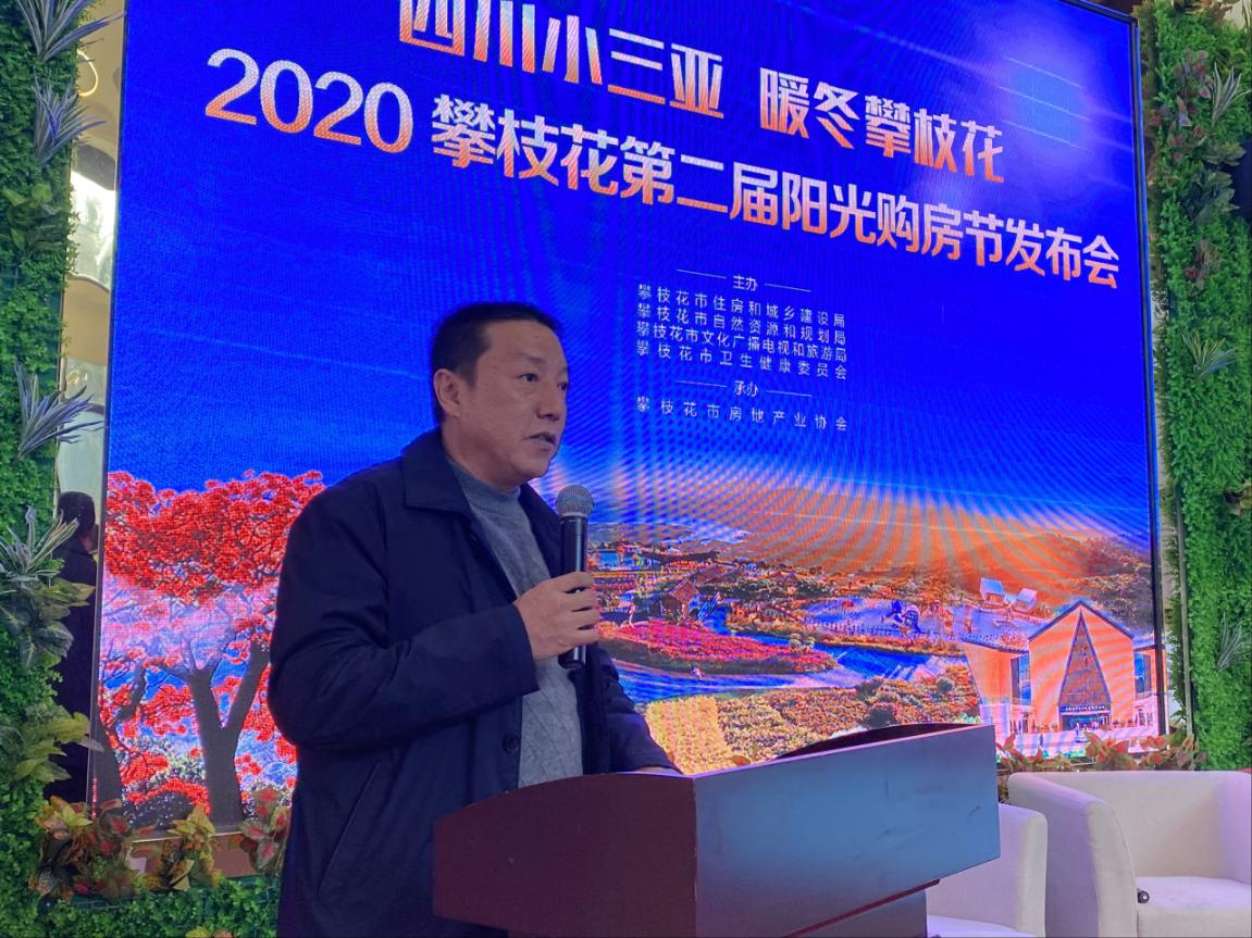 2020年1月11日下午,由攀枝花市住房和城乡建设局、攀枝花市自然资源和规划局、攀枝花市文化广播电视和旅游局、攀枝花市卫生健康委员会主办,攀枝花市房地产业协会承办的“四川小三亚暖冬攀枝花”2020攀枝花阳光购房节发布会在攀枝花“康养+”购房服务中心隆重举行。