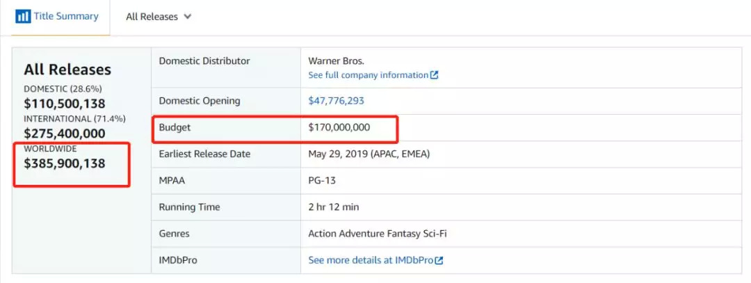 同样,由万达高价并购的美国传奇影业近两年表现也并不突出,由其参与的2018年的《摩天营救》和2019年上映的《哥斯拉2:怪兽之王》在票房收益上都未实现回本。而一向擅长打造大IP怪兽影片的传奇影业,随着该类型在市场的式微而变得有所萎缩,观众正逐渐对其失去兴趣。