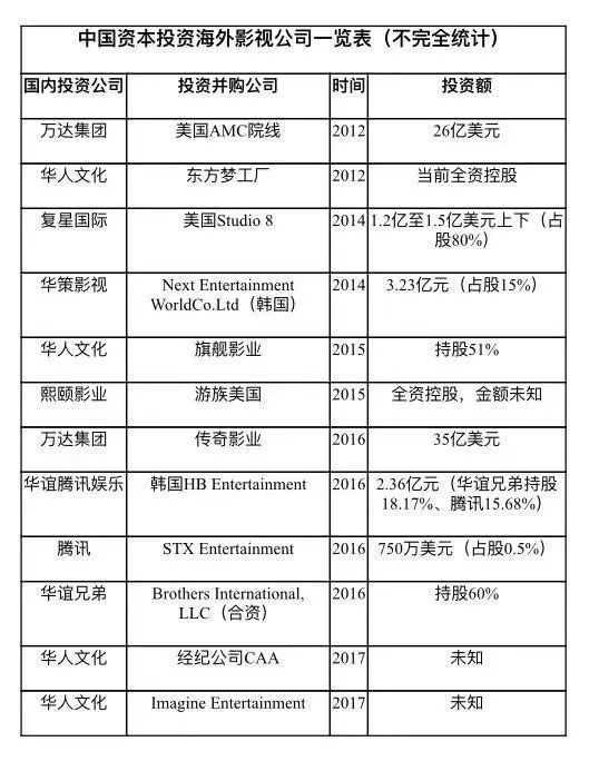 可以发现,其中万达投资的美国AMC院线和传奇影业距离盈利路途漫漫;复兴参股的美国Studio 8才刚刚起步,涉世未深;而华策影视投资的Next Entertainment WorldCo.Ltd由于“限韩令”政策的影响,也举步维艰。