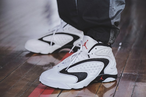 这双球鞋汲取Air Jordan XIII皮革鞋面的点状刺绣设计,加入外底人字纹设计,延续鞋款的实战性能。