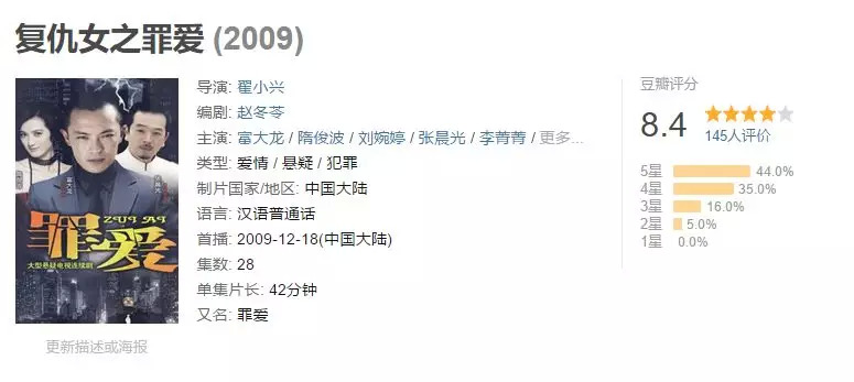 国内与法律相关的编剧是有牛人的,比如赵冬苓老师,她是关于公检法题材的一位硬核创作者。在2009年她有部作品叫《复仇女之罪爱》,名字听着有些雷人,但豆瓣评分高达8.4。这部剧某种意义上做出了国内律政剧的一个示范:更中国本土化的办公室、法庭和律师生活,但故事节奏不输美剧。男主角在第一集就想进入精英律所,但他马上了遭遇了律所主任的拷问:你有律师执照吗?没有执照的男主角只能悻悻走开。这和《精英律师》里没有学历也没有通过司法考试就上岗的戴曦相比,显然更符合中国国情。