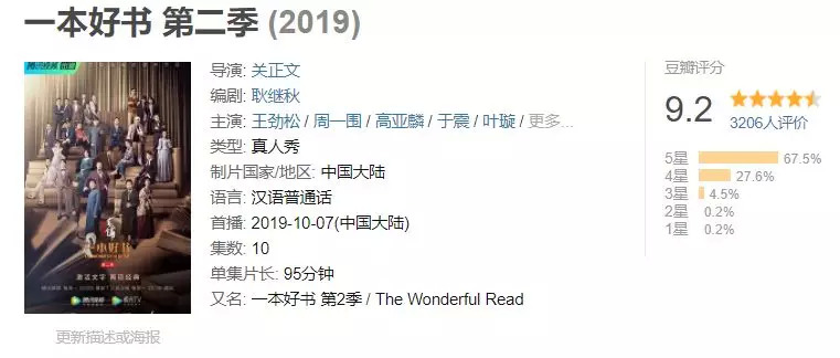 《忘不了餐厅》《一本好书第二季》豆瓣评分高达9.2