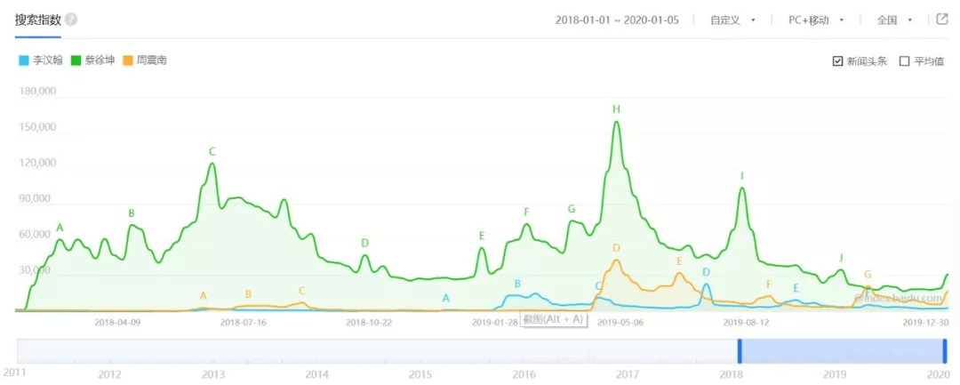 开年相继在三个视频平台播出、被寄予厚望的三档偶像男团选秀《以团之名》《青春有你》《创造营2019》,虽然仍是上半年综艺市场的“流量担当”,但最终表现可能只是限于粉圈内部的“狂欢”。从成团出道的人选来看,分别在《青春有你》《创造营2019》以第一名出道成团的李汶翰和周震南,百度搜索指数要远低于去年《偶像练习生》第一名的蔡徐坤。