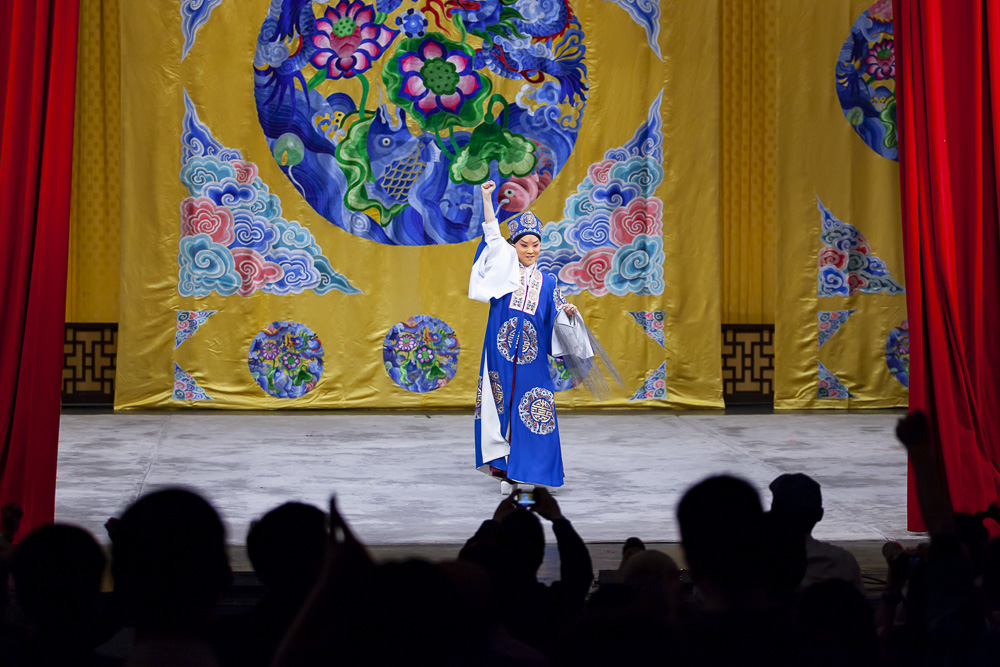 长长的唱段结束,有个小孩发出了长长的叫喊。全场观众都友善地笑了。王珮瑜反应很快:“刚才听到小朋友在笑,觉得很有意思是不是?等一下我还会唱很多的经典唱段。”