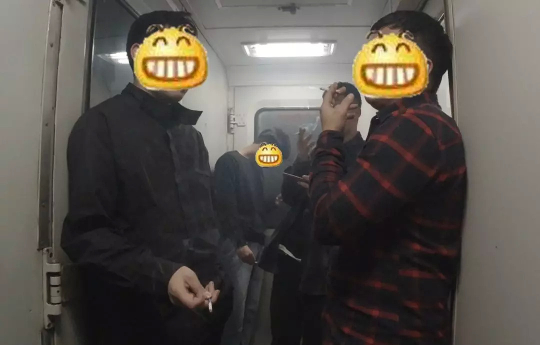 由于是半夜的火车,大多数乘客都在睡觉,好在吸烟区总归还是有几个受不了烟瘾挑逗的乘客在吞云吐雾的。