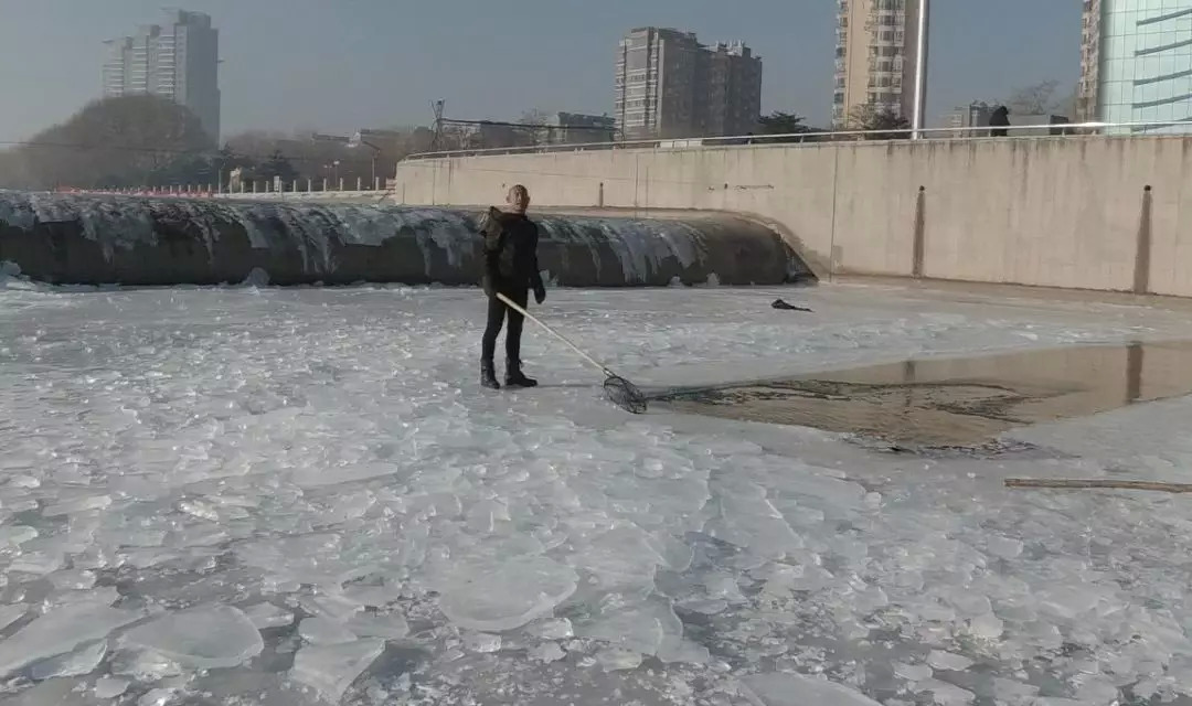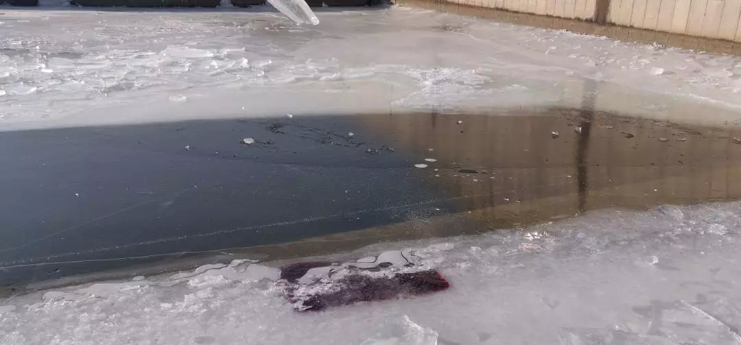 他一边凿着冰块,一边和我们聊天,他说自己是本地冬泳队的,这冰必须每天都来破,不然时间久了就凿不动了,而他从 2007 年开始冬泳,到现在已经坚持了十二年了。
