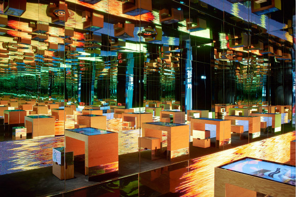 这场展览也应该是一整个营销方案的一部分。因为展览也陈列了LV每一季中最著名的产品。艺术家的手工工作室出现在大屏幕上,可以让参观者试试看到工匠制作作品时。另一个房间展示的是现代工艺,解释了皮革是如何切割来做成首饰。这些都是真实的LV运作流程,它们能帮助粉丝更好地理解品牌制作的过程、新旧设计理念如何融汇进产品,以及一个又一个的箱包是如何被模特提上秀场的。