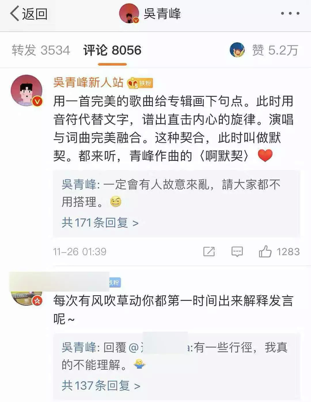 然鹅,录过demo可不代表就有了歌曲的授权,吴青峰已经表示在刘宇宁之前从未将《啊默契》授权给任何人,看到刘宇宁因为自己的歌被骂,吴青峰也直接站出来接连回应了好几条网友留言。