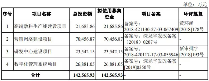 稳健医疗此次拟募集资金14.26亿元,主要用于:(1)高端敷料生产线建设项目;(2)营销网络建设项目;(3)研发中心建设项目;(4)数字化管理系统项目。