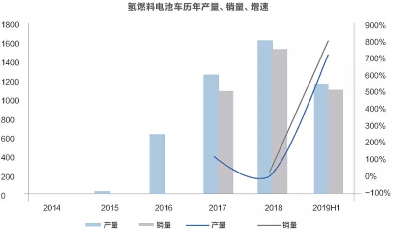 中国汽车工业协会数据显示,2019年1-10月,氢燃料电池汽车产销分别完成1391辆和1327辆。2018年,氢燃料电池汽车产销均完成1527辆。