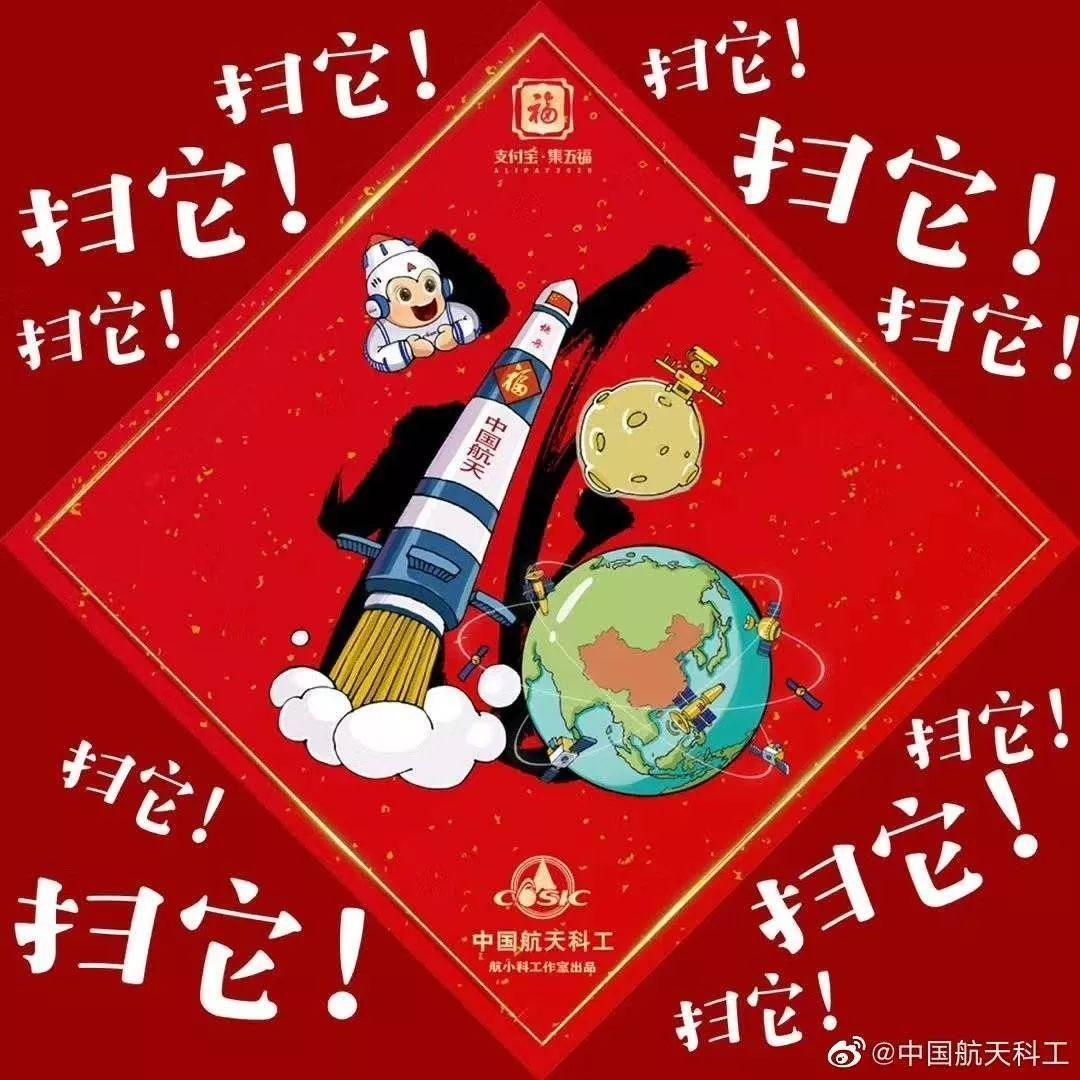 下面这张来自中国航天的专属福字,据说更容易扫到福。祝你好运!