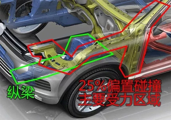 在25%小偏置碰撞中,帕萨特的主要问题有两点: