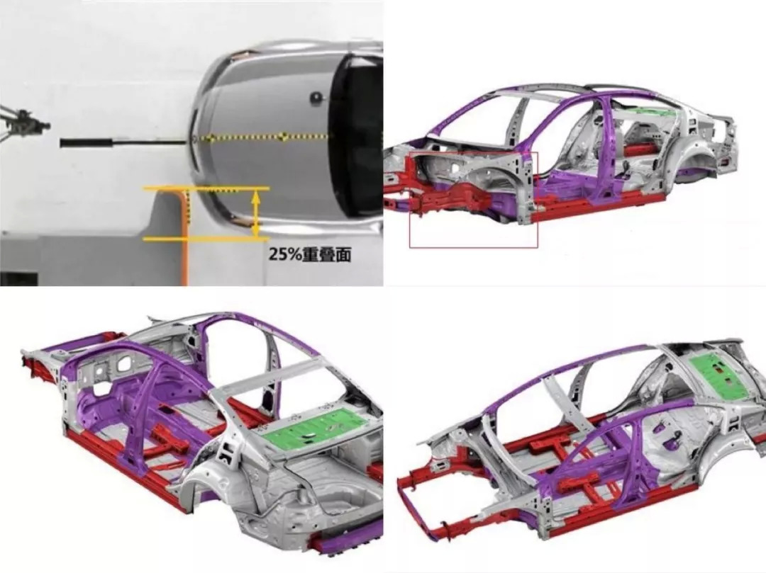 为什么这么说,我们拿一台25%小偏置碰撞测试的车型就能看得很清楚了(如下图,是领克01的25%小偏置碰撞图)。