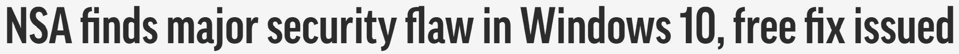 【美国安局发现Windows10重大安全漏洞】美国国家安全局发现微软Windows 10操作系统存在一个重大安全漏洞,黑客可以利用这一漏洞截获貌似安全的通讯。