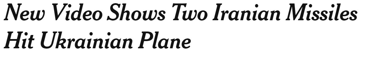 【监控录像显示伊朗两枚导弹击中乌克兰客机】纽约时报周二核实的监控录像首次显示,1月8日,两枚导弹击中了乌克兰国际航空公司的752航班,这些导弹是从距离飞机大约8英里的一个伊朗军事基地发射的。