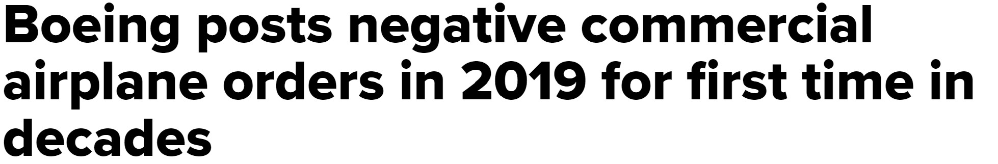 该公司一位发言人表示,他不确定该公司上一次全年失去商用飞机订单是在什么时候,但“在过去30年里肯定没有发生过这种情况”。相对而言,其对手空中客车2019年获得768架新飞机的订单。