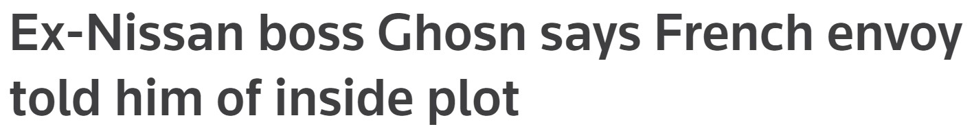 【戈恩称法国大使曾警告说日产在策划针对他的阴谋】日产汽车前董事长戈恩周二在贝鲁特表示,在他被捕后不久,法国大使就警告他说日产在策划针对他的阴谋。